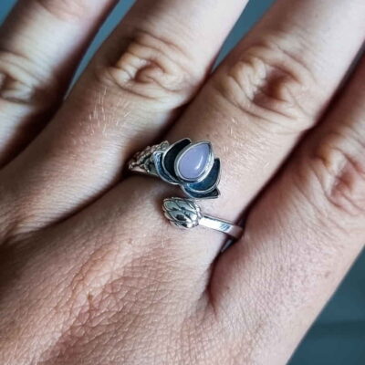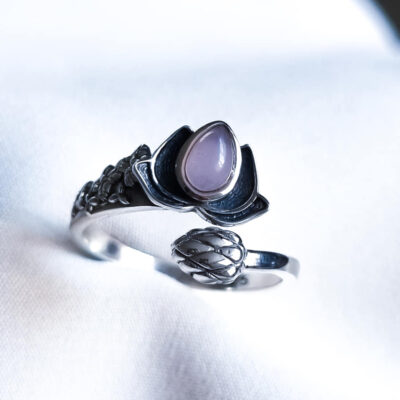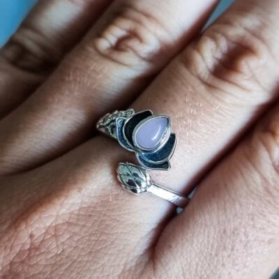 Anillo Flor de Loto ajustable Cuarzo Rosa