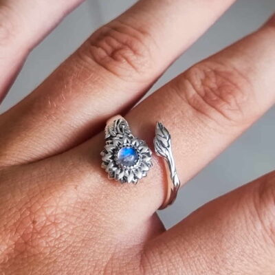 Anillo Girasol Ajustable Piedra Luna