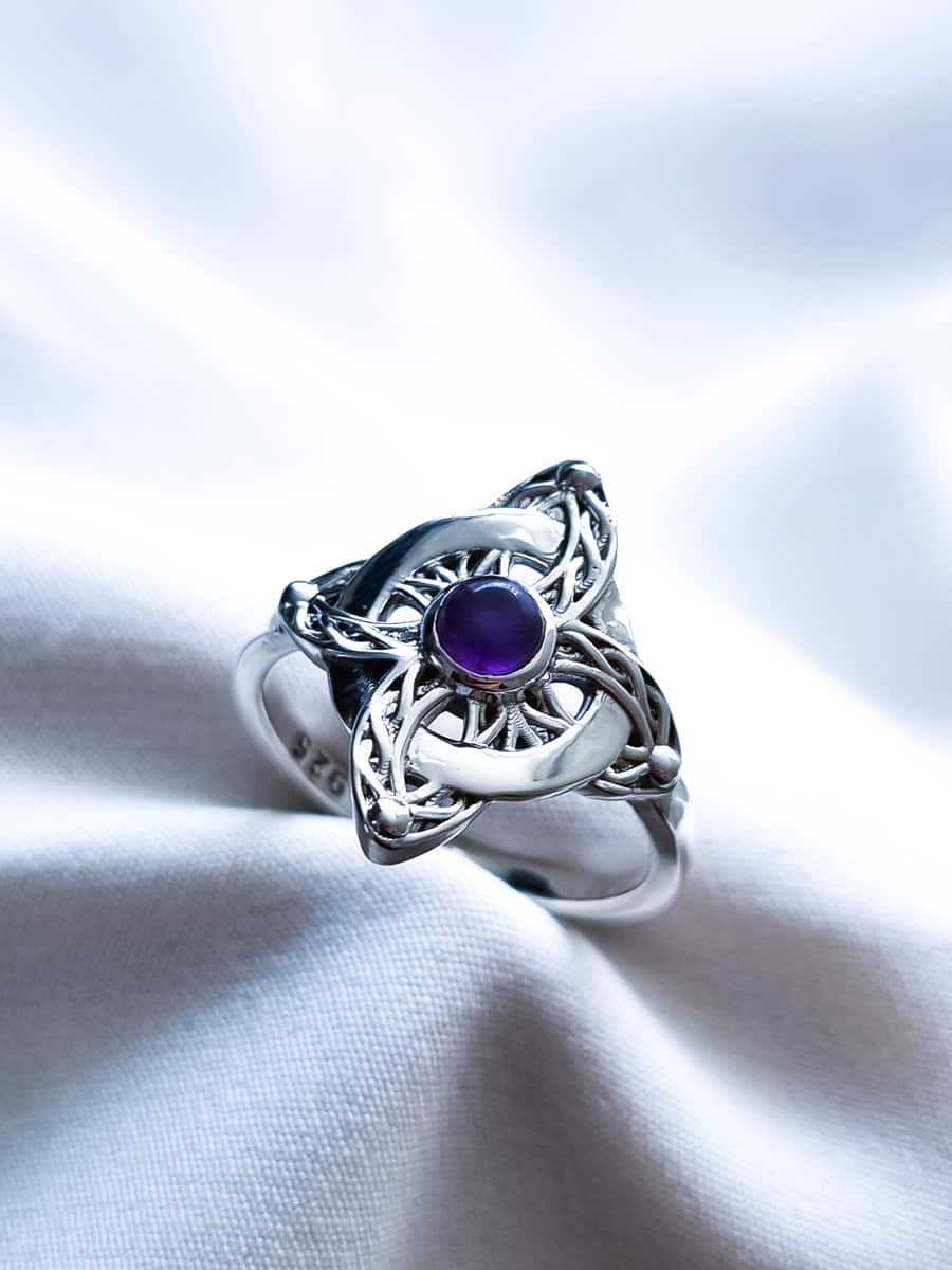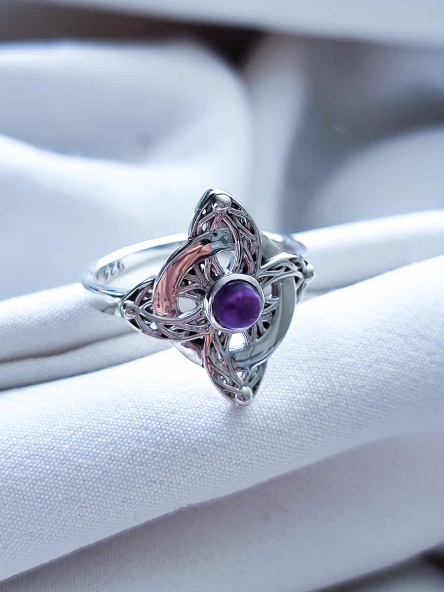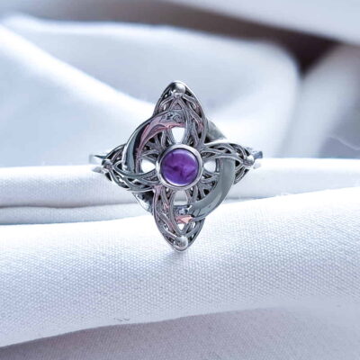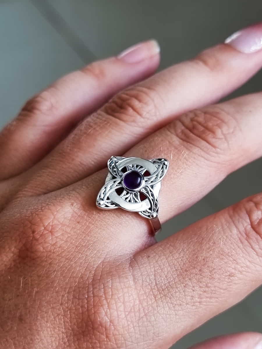 Anillo Nudo de Brujas Celta Amatista