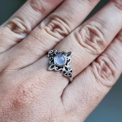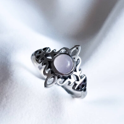 Anillo Nudo de Brujas y Triqueta Cuarzo Rosa