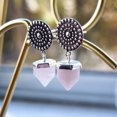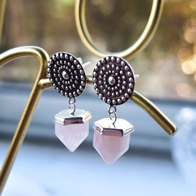 2 valoraciones en Aros Pendulo Selene Cuarzo Rosa