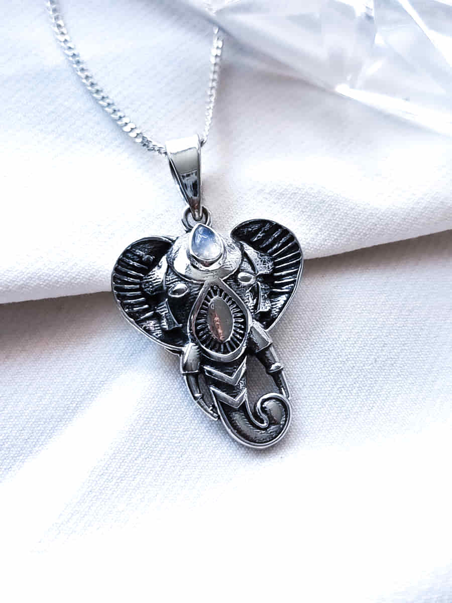El elefante es un poderoso símbolo de fuerza, sabiduría y estabilidad. Representa la abundancia y la prosperidad, atrayendo buena fortuna y protección contra energías negativas. Su imponente figura transmite seguridad y equilibrio, ayudando a superar obstáculos con firmeza y serenidad. La piedra luna potencia la intuición, la claridad emocional y la conexión espiritual, aportando calma y armonía interior. Juntos, este colgante se convierte en un amuleto de protección, abundancia, sabiduría y equilibrio energético.