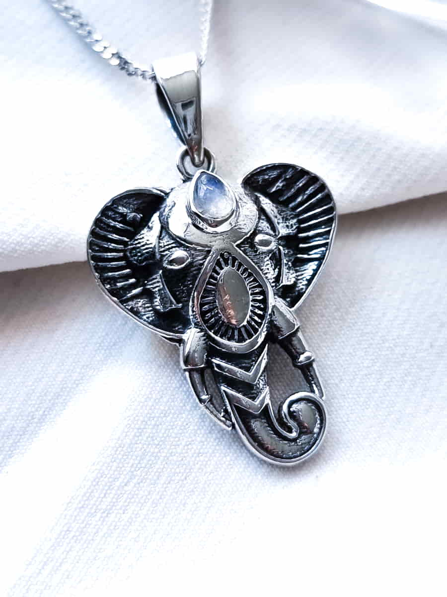 Colgante Elefante Abundancia y Protección con Piedra Luna
