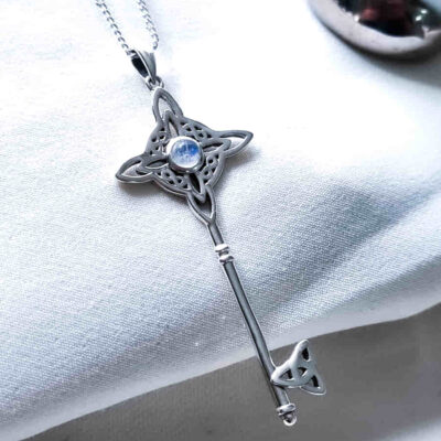 Colgante Llave Nudo de Brujas, triqueta y Piedra Luna